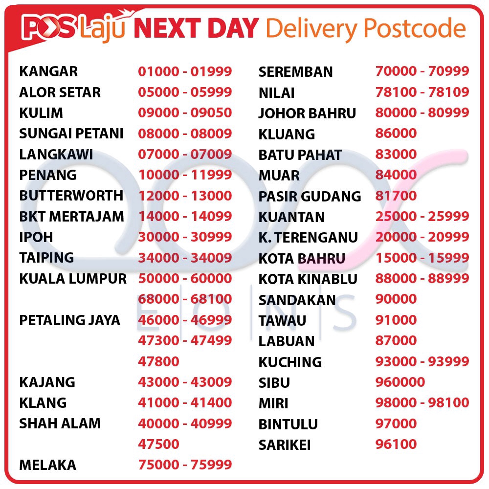 Postcodes in Malaysia are administered by Pos Malaysia. COVID-19 Info and Resources. The first two digits of the.
